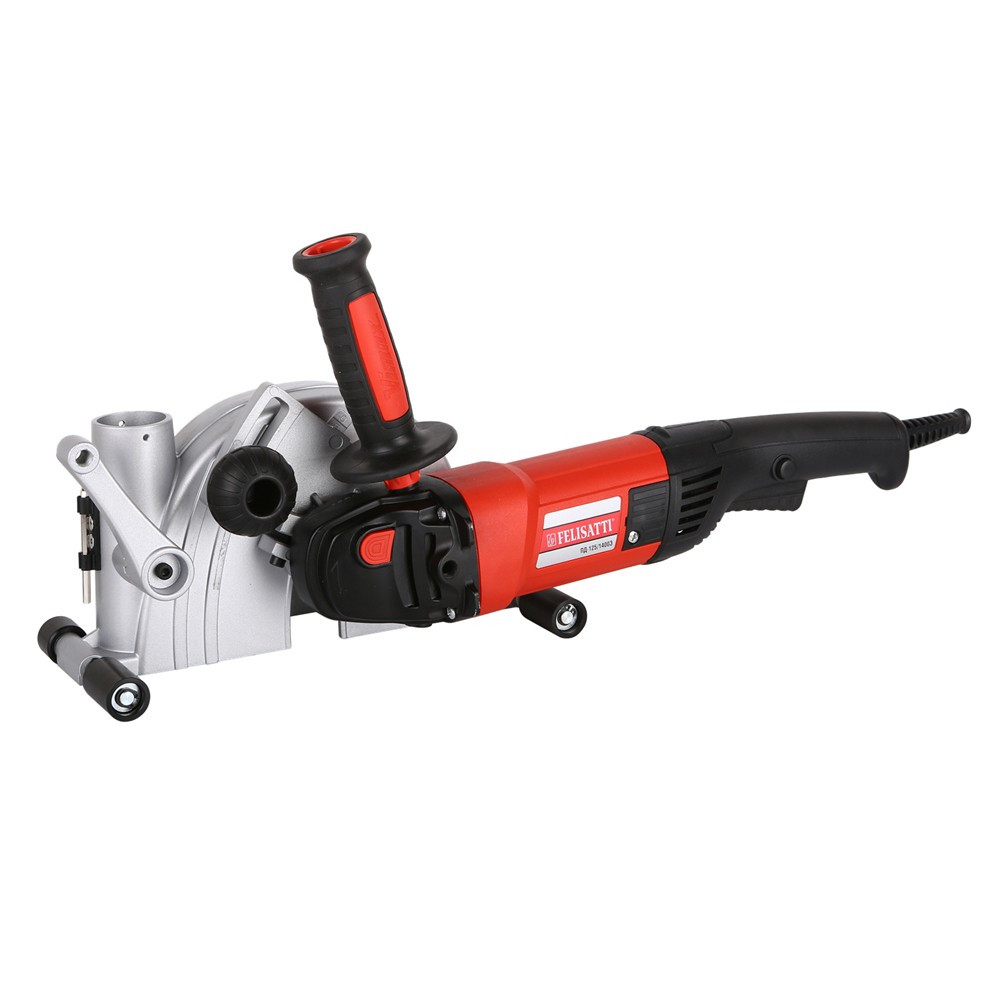 Штроборез Felisatti ПД-125/1400Э является сетевым инструментом с мощностью двигателя 1400 Вт, частота обращения двигателя будет 9500 об/мин. Это позволяет без особых усилий делать пазы глубиной 30 мм и шириной 29 мм в бетонной стене. Данная модель оснащена поддержкой постоянных оборотов под нагрузкой и автоматической защитой электродвигателя от перегрузки. Заливка обмоток статора и лобовины на роторе защищают двигатель от разрушительного воздействия пыли и шлама. Корпус и нижняя крышка редуктора из магниевого сплава для облегчения конструкции. Пониженный уровень шума благодаря косозубому коническому редуктору. Закрытый шариковый передний подшипник качения на шпинделе и роликовый задний подшипник для повышенной надежности. Лабиринтное уплотнение шпинделя, обеспечивающее дополнительную пылезащиту. Специальный высокопроизводительный двигатель для работы в продолжительном режиме. Адаптер для подключения шланга пылесосов с системой 35 (диаметр присоединительного патрубка на шланге пылесоса) для эффективного пылеудаления. Обрезиненный корпус основной рукоятки облегчает удержание машины. Автоматически отключаемые по износу щетки продляют жизнь двигателя. Крышки для быстрой замены щеток без разборки облегчают обслуживание.