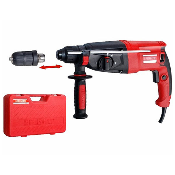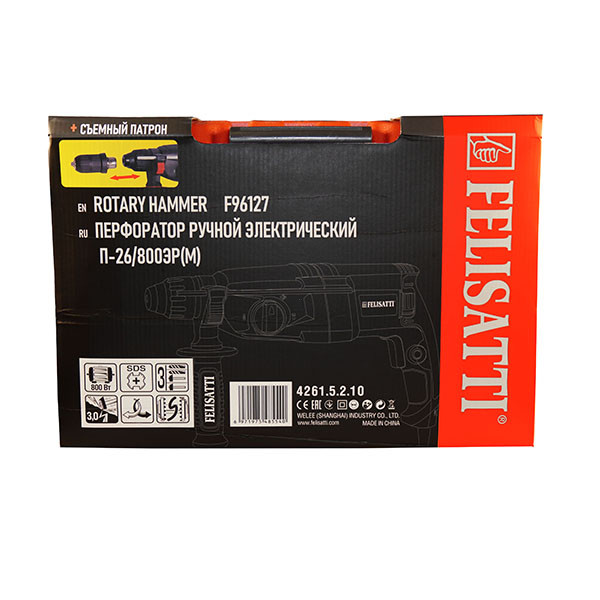 Перфоратор электрический Felisatti П-26/800ЭР(М) рекомендуется для бурения отверстий и небольших отбойных работ для профессионального и бытового использования. Оснащается дополнительной рукояткой с ограничителем глубины бурения. Перфоратор может выполнять бурение, сверление (закручивание крепежа) и отбойные работы. Самая короткая база в своем классе благодаря оригинальной запатентованной компоновке кривошипно-шатунного механизма.