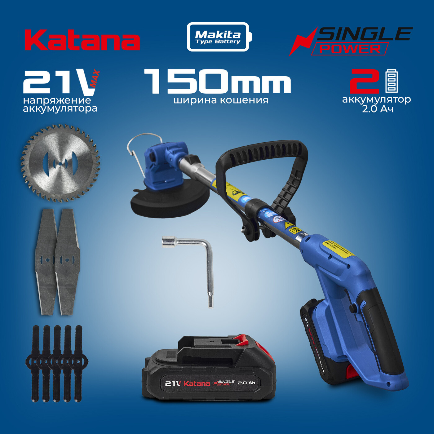 Триммер аккумуляторный KATANA BT-1202 (21V, 2 аккум., З/У, ножи в комплекте)