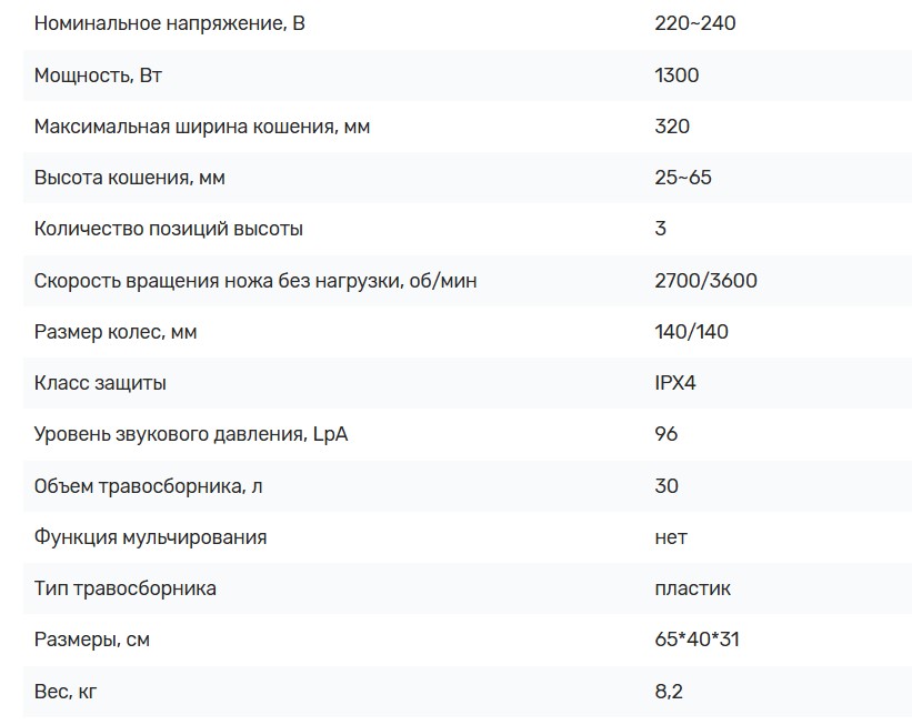 Регулировка высоты кошения, мм - 30−90 (6 уровней)